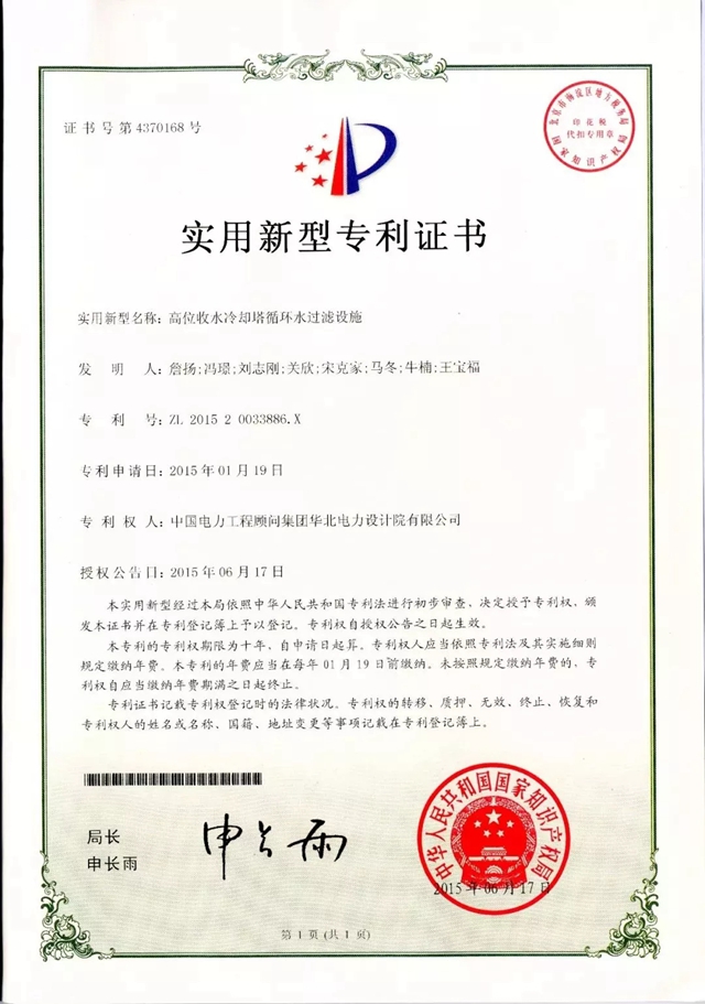 專家組在評審意見中高度評價(jià)了華北院取得的成果,一致認(rèn)為:“該項(xiàng)目技術(shù)成果達(dá)到國內(nèi)領(lǐng)先水平,高位收水冷卻塔循環(huán)水過濾設(shè)施達(dá)到國際先進(jìn)水平”“建議盡快推廣應(yīng)用”。