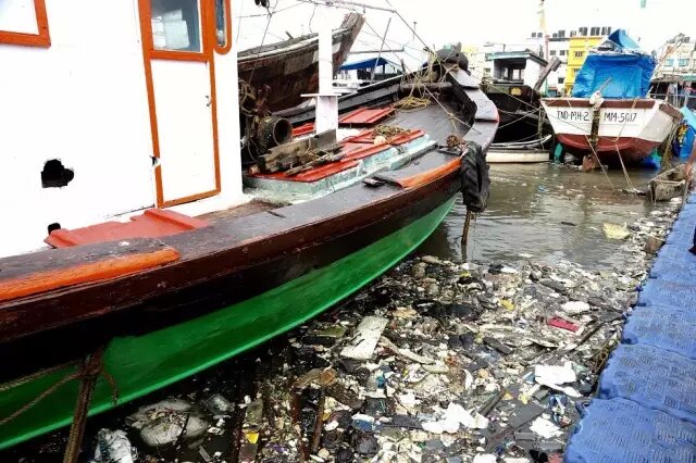 Versova海灘的部分垃圾來自于附近的街區(qū),而更大一部分來自于默拉得河(Malad Creek)的雨水排水管。河面看起來仍然很漂亮,但實際上,遠岸的紅樹林,以及??吭诟咚坏?/span>漁船間隙中,是成堆成堆的垃圾。