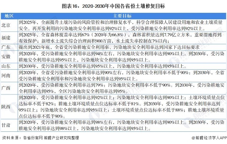 ——31省市土壤修復(fù)行業(yè)發(fā)展目標(biāo)解讀
