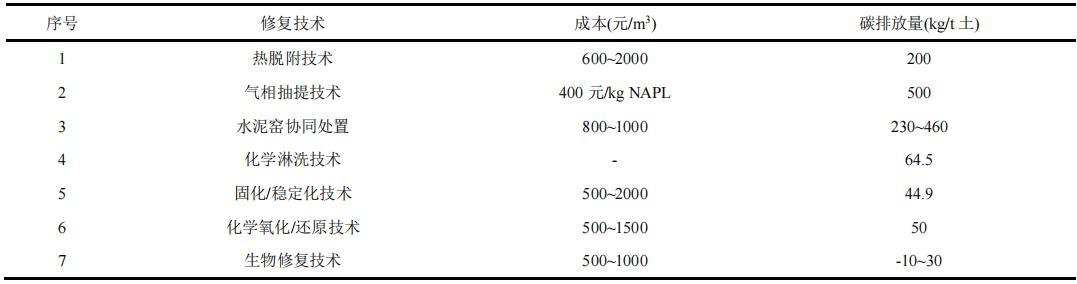 表2 土壤修復(fù)部分技術(shù)案例碳排放對比