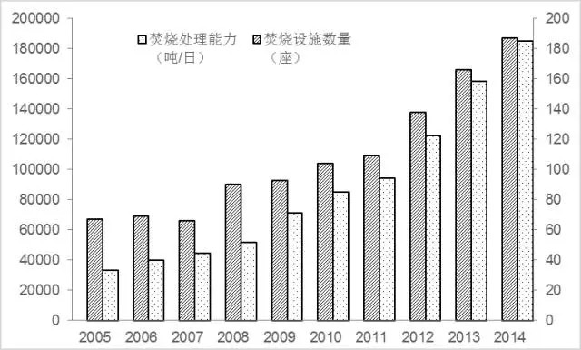 近年來我國(guó)城市生活垃圾焚燒處理設(shè)施投入運(yùn)行數(shù)量逐年增加,焚燒處理能力也有非常大的提高。