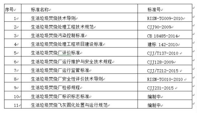 生活垃圾清潔焚燒在我國(guó)已經(jīng)有將近30多年的歷史,垃圾焚燒處理技術(shù)裝備日趨成熟,產(chǎn)業(yè)鏈條、骨干企業(yè)和建設(shè)運(yùn)行管理模式逐步形成,相關(guān)的設(shè)計(jì)、建設(shè)、運(yùn)行標(biāo)準(zhǔn)和評(píng)價(jià)體系也日趨成熟完善。近年來一些標(biāo)準(zhǔn)和規(guī)章制度相繼實(shí)施: