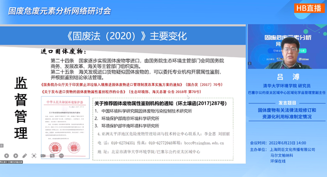 直播最后,呂溥為我們帶來(lái)了《固體廢物有關(guān)法律法規(guī)修訂和資源化利用標(biāo)準(zhǔn)制定情況》的演講。