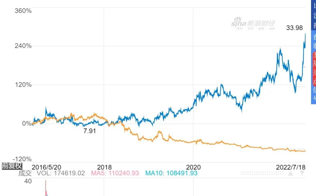我們對(duì)比下與另一個(gè)環(huán)保龍頭啟迪環(huán)境的走勢(shì)可以看出,2018年前兩者走勢(shì)差不多,2018年后,啟迪環(huán)境一路下跌,而偉明環(huán)保則一路上漲,形成巨大的喇叭口。啟迪環(huán)境4年多估值大約下降了80%,偉明上漲了250%。啟迪環(huán)境代表著很多環(huán)保企業(yè),而跟偉明環(huán)保走勢(shì)相仿的則寥寥無(wú)幾。