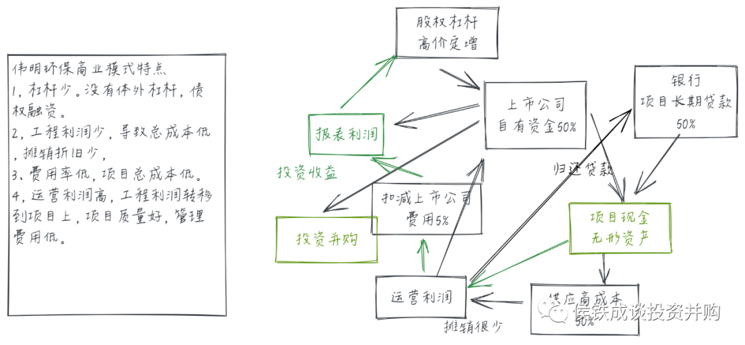 偉明一方面拓展新的業(yè)務(wù),另一方面也在走其他企業(yè)走過(guò)的路。自己賣(mài)設(shè)備給自己的投資項(xiàng)目,賺取工程毛利,這塊報(bào)表上有所體現(xiàn),并且比例不小,還有增長(zhǎng)。也在走其他環(huán)保企業(yè)走過(guò)的老路。但由于前面反著走,給人們留下了穩(wěn)健的印象,現(xiàn)在走老路,反而不容易被發(fā)現(xiàn)。前面以誠(chéng)懇示人,后面再回歸套路,是個(gè)很好的小閉環(huán)。企業(yè)成長(zhǎng)的周期中,這個(gè)套路非常有效,也具有很強(qiáng)的持續(xù)性。偉明屬于環(huán)保行業(yè)的后來(lái)創(chuàng)新者,進(jìn)入行業(yè)較晚,但取得成績(jī)不小。