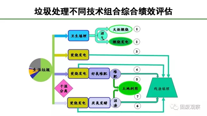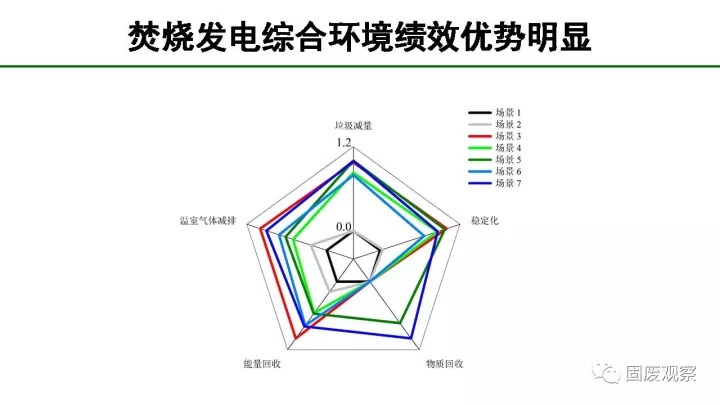 根據(jù)我們做的垃圾處理不同技術組合綜合績效評估,生活垃圾處理最理想的方式是通過焚燒、堆肥后最終讓垃圾回到土地利用,但是如果還無法為廚余找到土地回用出路的話,焚燒是目前階段最適合的方法,其在垃圾減量、溫室氣體減排、能量回收和穩(wěn)定化四個方面的綜合評估都遙遙領先。