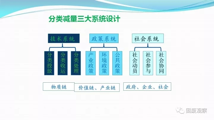 第二部分主要介紹2010年以后上海市推進垃圾分類的主要做法。2010年,世博會臺灣館給我們展示了一個讓人震撼的垃圾分類結(jié)果,上海開始火熱的推動垃圾分類工作。基本思路提出了規(guī)劃引領(lǐng)、政府主導,市場運作、社會參與。提出這些思路是因為到現(xiàn)階段,更加注重到了解決全體系問題對垃圾分類的重要性。