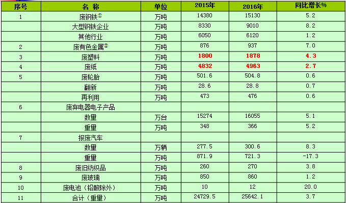上述報(bào)告中可以看到,2016年,廢塑料回收量1878萬噸,廢紙回收4963萬噸。徐海云判斷:“如果這部分不統(tǒng)計(jì)進(jìn)去,國(guó)家定的35%的目標(biāo),無論如何也實(shí)現(xiàn)不了的。但從另一方面看,我們國(guó)家不僅自己回收利用了大量廢品,還進(jìn)口了大量的廢品,如果把進(jìn)口算上的話,回收利用率早就超過了35%?!?/p>