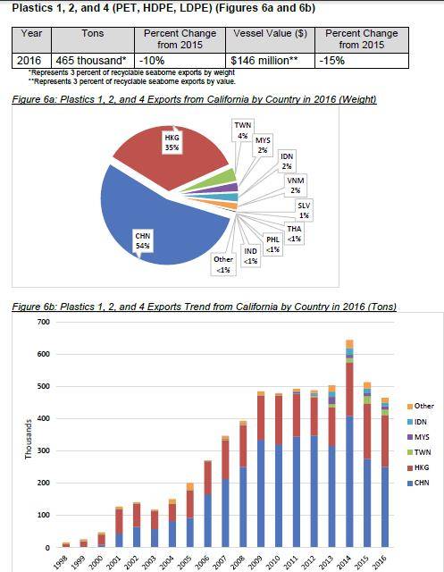 因此,徐海云為中國(guó)的回收再生領(lǐng)域“打抱不平”:“目前,中國(guó)是最大的塑料生產(chǎn)國(guó),也是最大的消費(fèi)國(guó),但人均消費(fèi)量不到發(fā)達(dá)國(guó)家的一半。目前,塑料瓶的回收率,歐盟的數(shù)據(jù)是50%(2015年),美國(guó)是28%(2016年),日本是92%(2015年),中國(guó)沒有權(quán)威的統(tǒng)計(jì)數(shù)據(jù),但我認(rèn)為一定比他們高。易拉罐方面,歐盟回收率目標(biāo)是73%,提出到2025年達(dá)到75%,但這個(gè)目標(biāo),中國(guó)一定也超過了?!痹诿绹?guó)加州做的出口到中國(guó)廢塑料統(tǒng)計(jì)中,可以看到中國(guó)廢塑料回收利用情況與其他幾個(gè)國(guó)家的對(duì)比情況: