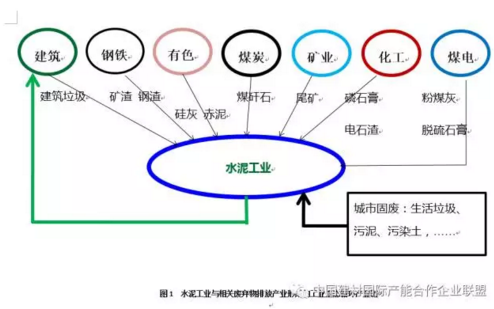 水泥工業(yè)綜合利用工業(yè)固體廢物的歷史悠久。有多少工業(yè)產(chǎn)業(yè)的固廢要依賴水泥工業(yè)和水泥制品產(chǎn)業(yè)安全處置和資源化綜合利用呢?實(shí)在太多,筆者無法作全面統(tǒng)計(jì),尤其是各種工業(yè)過程產(chǎn)生的危險(xiǎn)廢棄物,但是圖1中所列出的相關(guān)產(chǎn)業(yè)已足夠令人有一個(gè)大觀。據(jù)2010年的數(shù)據(jù),水泥工業(yè)固廢利用已占全國固廢利用量的30%左右。一些業(yè)內(nèi)外人士認(rèn)為水泥工業(yè)利廢是理所當(dāng)然,其實(shí)不然。水泥生產(chǎn)利用可燃廢物,最初是因?yàn)閲夷茉炊倘睍r(shí)降低水泥產(chǎn)品生產(chǎn)能耗的需要。水泥熟料生產(chǎn)有著嚴(yán)格的生料化學(xué)組分設(shè)計(jì)、成分波動(dòng)范圍和熟料產(chǎn)品質(zhì)量控制要求,從系統(tǒng)穩(wěn)定生產(chǎn)和質(zhì)量控制上來說,組分變化或波動(dòng)較大、所含微量元素不同和濃度高低、廢物性能差異較大的各種工業(yè)固廢的利用,均會(huì)對水泥生產(chǎn)過程和產(chǎn)品質(zhì)量帶來影響,需要通過研發(fā),采取相應(yīng)的技術(shù)措施加以協(xié)同和消除影響??梢哉f,每一種廢棄物的利用都必須研發(fā)相應(yīng)的控制技術(shù),水泥工業(yè)的環(huán)保功能是建立在科技創(chuàng)新的基礎(chǔ)之上。