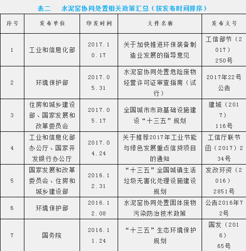 從2010年至2017年,與水泥窯協(xié)同處置相關(guān)的國務(wù)院和部委發(fā)布的政策已達(dá)26項(xiàng)之多(表二)。這些直接和間接支持水泥窯協(xié)同處置的政策創(chuàng)新和政府主管部門的直接推動(dòng),加快了水泥窯協(xié)同處置的創(chuàng)新發(fā)展。但遺憾的是,水泥窯協(xié)同處置企業(yè)迄今仍然不能享受國家對生活垃圾處置的財(cái)政補(bǔ)貼。其實(shí),在市場機(jī)制下,他們真正需要的是公平競爭環(huán)境。筆者相信,長風(fēng)破浪會(huì)有時(shí),不用多久,水泥窯協(xié)同處置生活垃圾一定會(huì)成為政府不可或缺的好幫手。