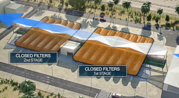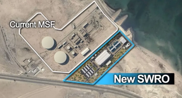 這個新的海水淡化廠建在一個現(xiàn)有反滲透海水淡化廠旁邊,占地面積約17.5公頃。太陽能面板組將安裝在距離海水淡化廠1公里以外90公頃的土地上。
