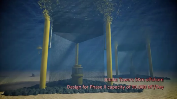 海水首先進(jìn)入一個裝有水母過濾裝置的取水塔,這個取水塔距離廠房6公里以外的水域,同時還備有石油泄露污染警報浮標(biāo)。