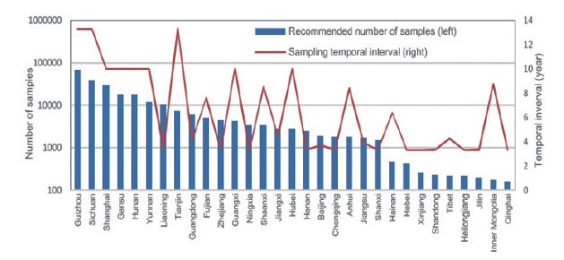 圖1研究區(qū)土壤重金屬監(jiān)測的時間間隔和推薦樣品采集數(shù)量