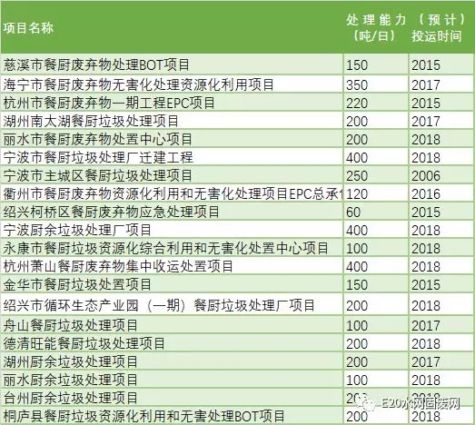 據(jù)E20研究院統(tǒng)計,截止到2017年11月,江蘇省已建(含在建)餐廚垃圾處理項目共計18個,設(shè)計處理能力為3300噸/日。浙江省則建有餐廚、廚余垃圾處理項目20個,處理能力達(dá)4300噸/日。