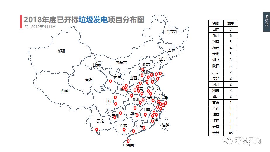 在全國開標(biāo)的46個垃圾發(fā)電中,21個位于華東地區(qū),占項目總量的45%。