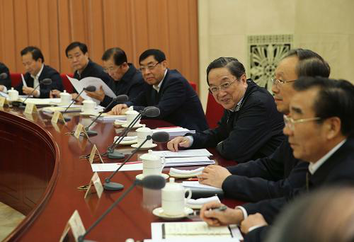 2014年10月30日,全國政協(xié)在北京召開雙周協(xié)商座談會,就“利用水泥窯協(xié)同處置垃圾廢棄物”問題建言獻策。全國政協(xié)主席俞正聲主持會議并講話。新華社記者 劉衛(wèi)兵 攝