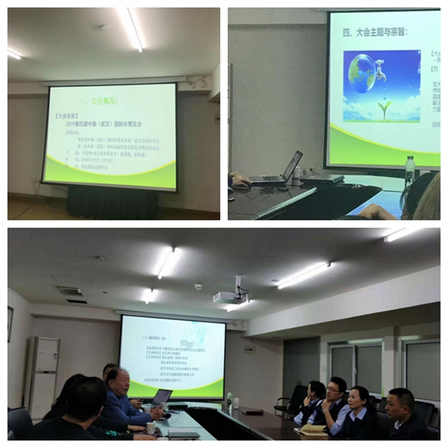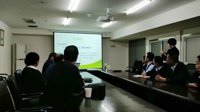 其次由水博會組委會項目運營總監(jiān)胡兵為參加會議的相關(guān)領(lǐng)導(dǎo)介紹展示2019中國(武漢)國際水博覽會項目實施方案的講解,詳見下圖